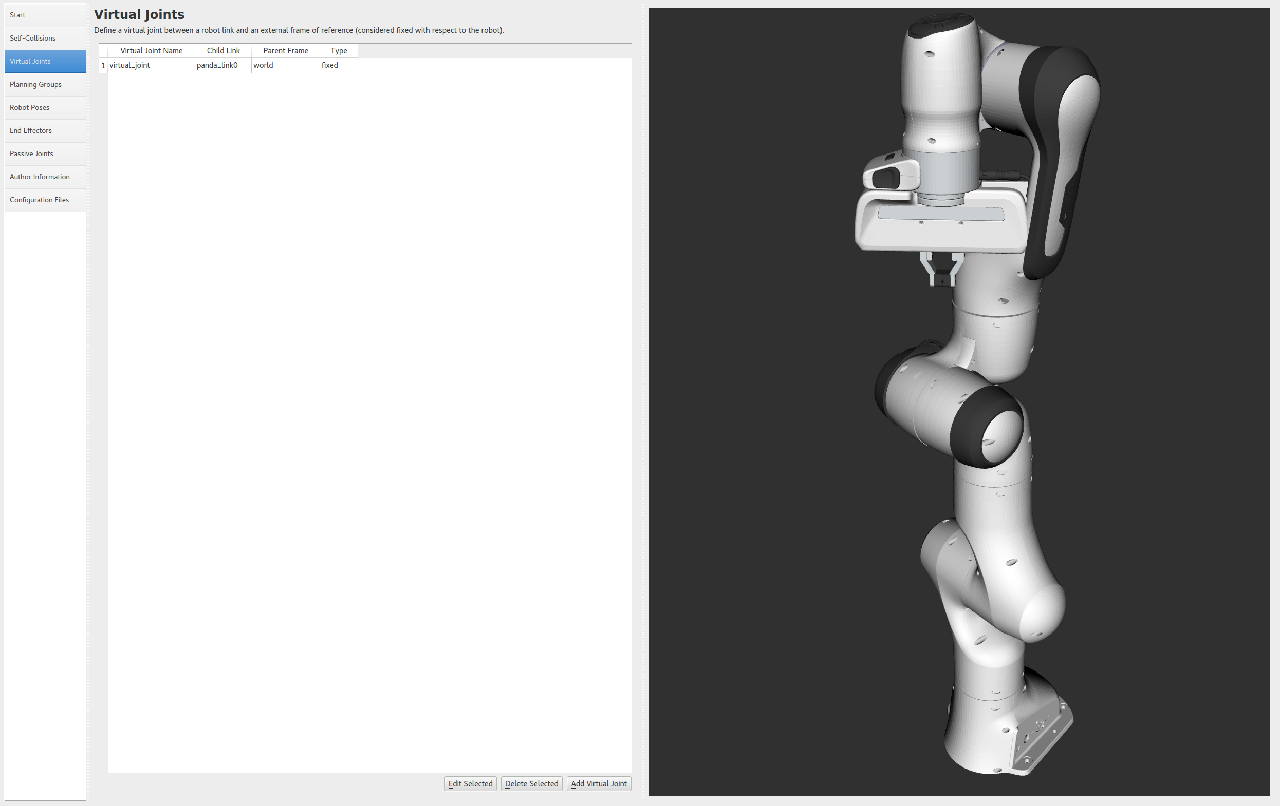 - Set the joint name as “virtual_joint”